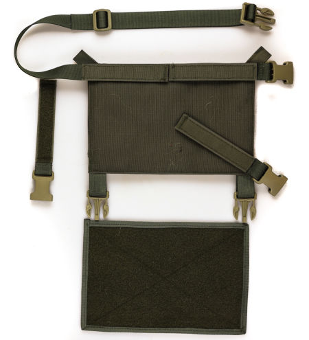 Wielkość panelu odpowiada standardowym rozmiarom stosowanym w większości Plate Carrierów. Dzięki zastosowaniu klamer naprawczych, Chest Rig może pełnić funkcję przedniej klapy Plate Carriera, co zwiększa jego wszechstronność.