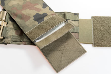 Kamizelkę w części wewnętrznej (przylegającej do ciała) wyposażono w szerokie rzepy umożliwiające przytwierdzenie dowolnych comfortpadów.